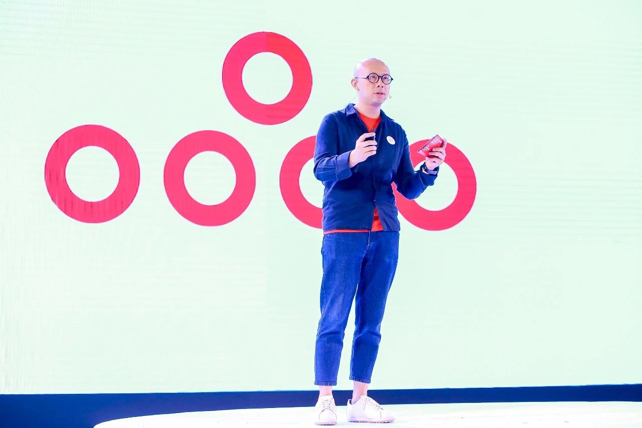設(shè)計師黃揚現(xiàn)場解讀盈眾全新品牌形象。他表示,新Logo對原有品牌形象進行了傳承與創(chuàng)新,五個紅色圓環(huán)通過極簡手法重新排列,形成更具創(chuàng)新感和未來感的圖形符號,象征著盈眾一直追求的和諧人車關(guān)系。