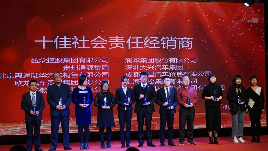 在頒獎典禮上,盈眾控股集團(tuán)榮獲“十佳汽車營銷集團(tuán)”和“十佳社會責(zé)任經(jīng)銷商”稱號。
